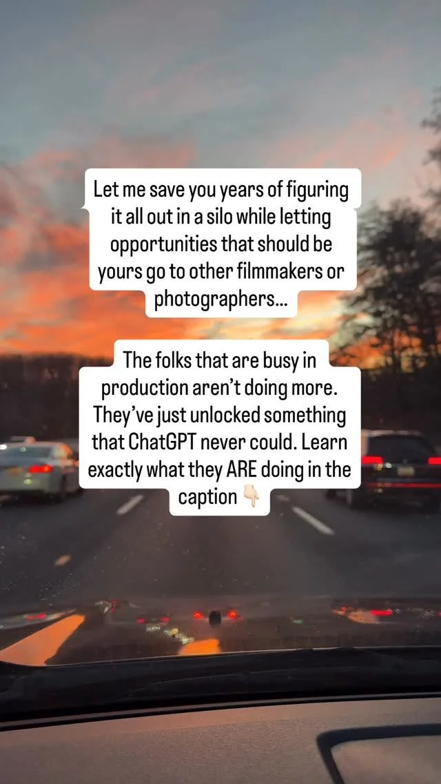 Now, I’m on a mission to equip filmmakers and photographers with everything they didn’t learn in film school or on set—so they can land bigger jobs, better creative and bigger budgets by smartly merging positioning, messaging and strategy.